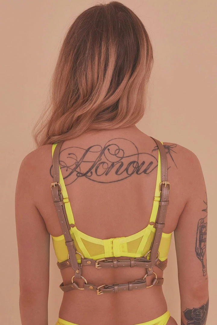 Extendable using the buckles around the waist and over the shoulders, this piece can be worn by anyone who feels like spicing things up in and out of the office. Can be worn with braces at the front, or O-ring at the front.