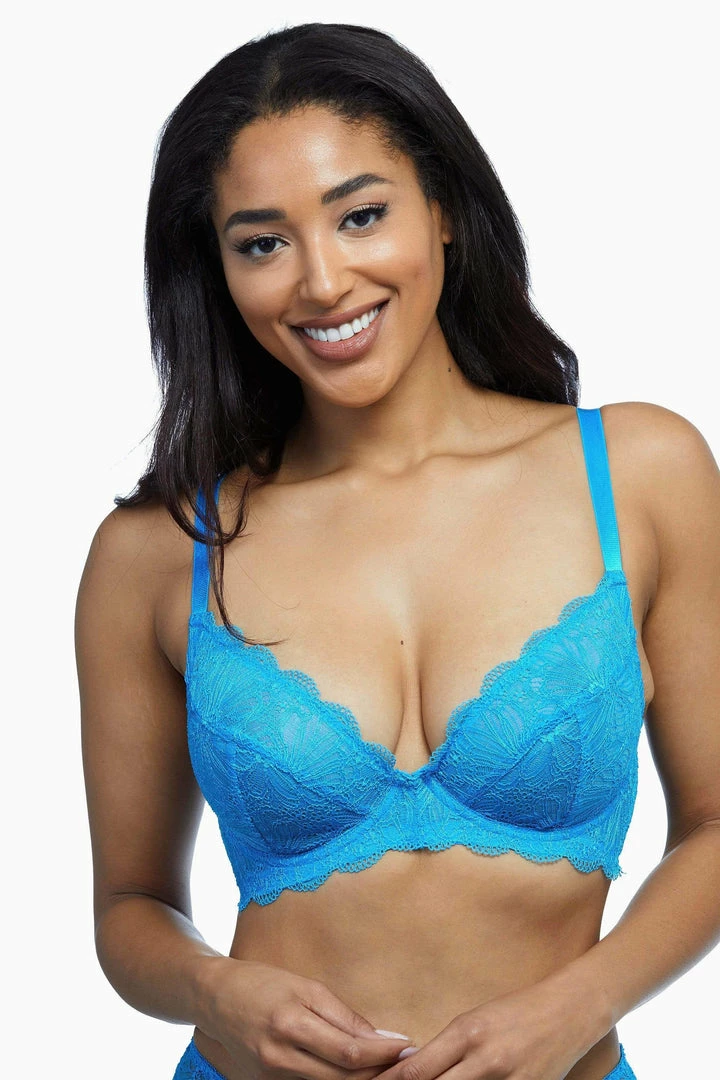 The Ariana is back in a new fit for more support. Here in a Blue colour way, this is the everyday lace bra you have been waiting for. A classic bra with a modern and considered shape to flatter your figure. Leaving you comfortable and empowered.