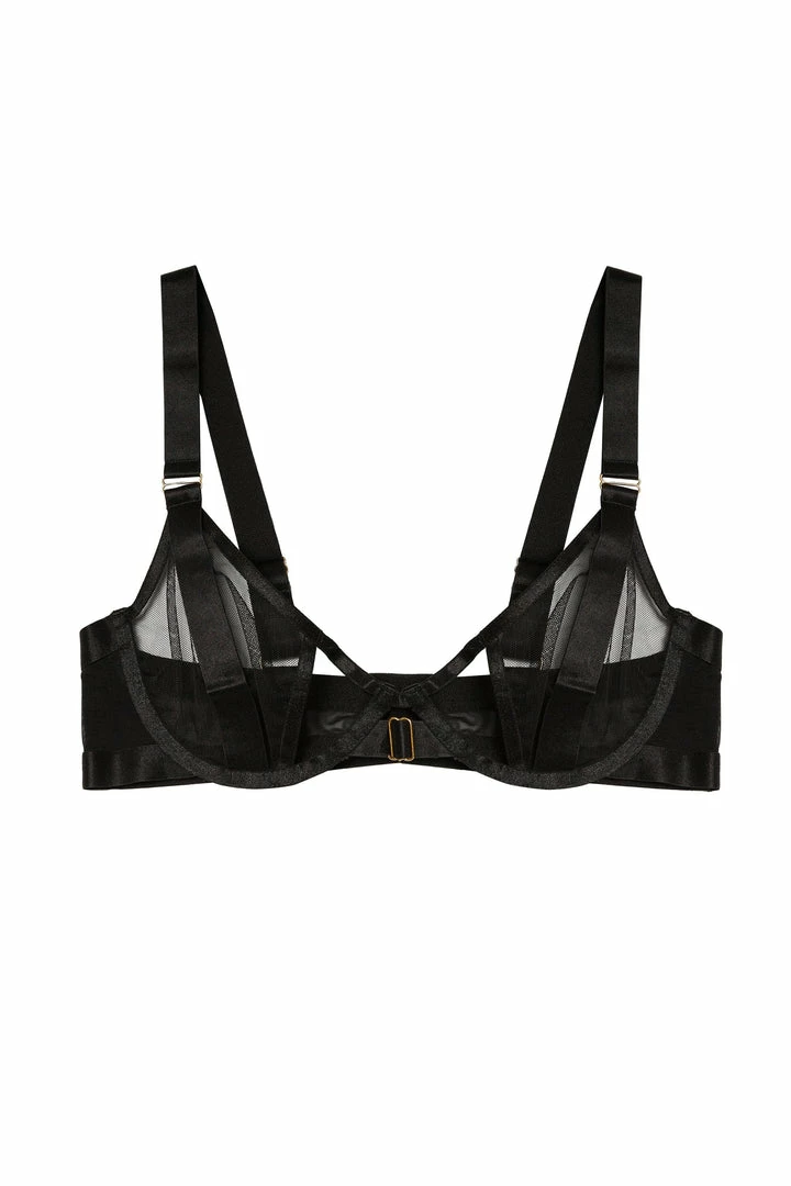 Ayla is the ultimate Mesh Bra…It features sheer mesh cups with elastic strappy details that are adjustable. Match with the Ayla Mesh Thong for a classic sexy black set.