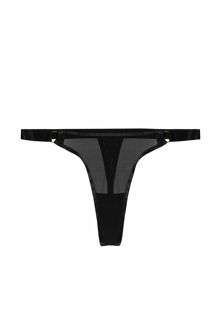 Ayla is the ultimate Mesh Thong…It features sheer mesh with thick elastic straps and gold ring details on the hips. Match with the Ayla Mesh Bra for a classic sexy black set.