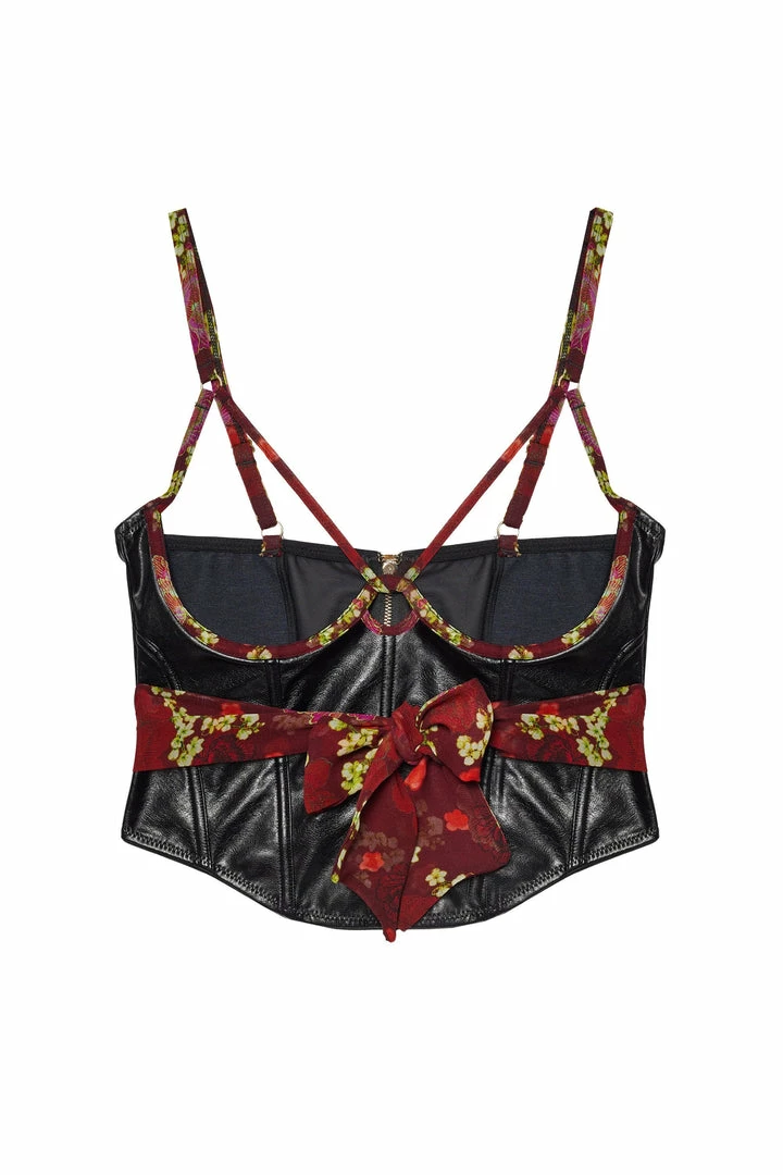 - Leatherette corset with floral accents