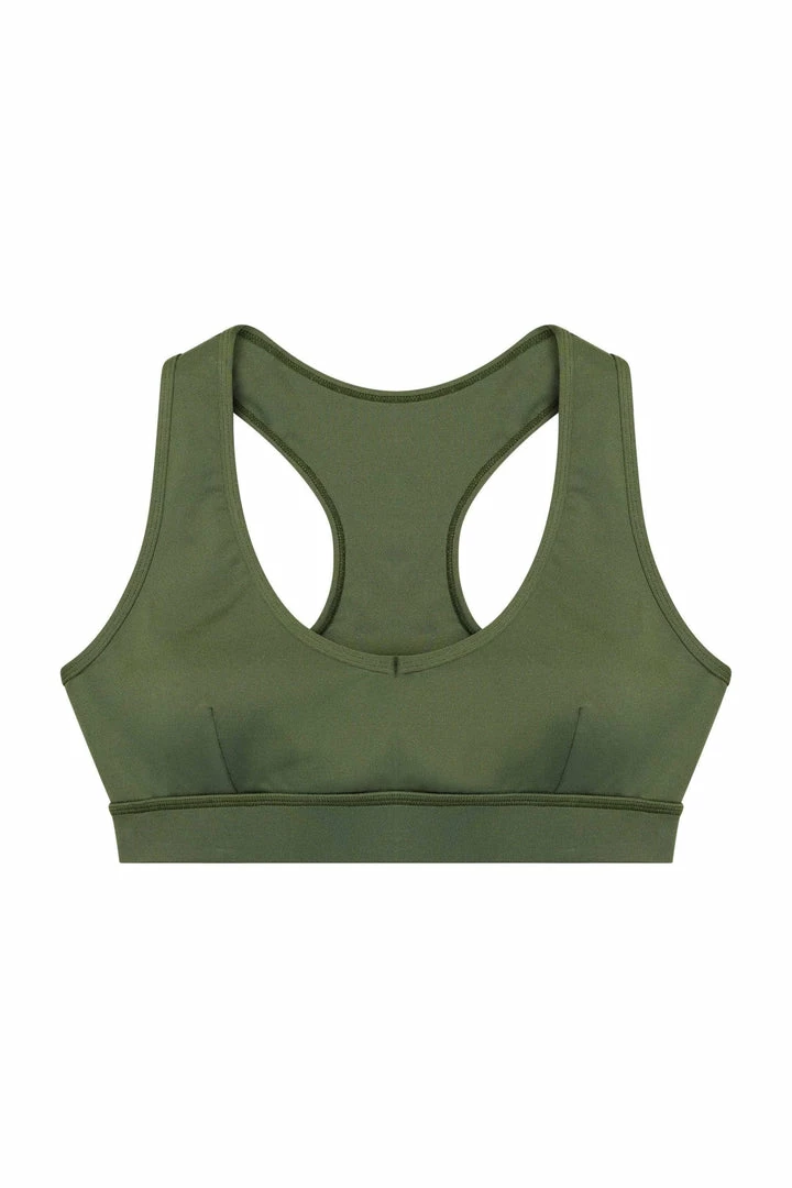 Dusty Olive Racer Back Bra is here to support you throughout your workout! This cropped style with a supportive underband will keep your comfortable, stylish, and feeling powerful.