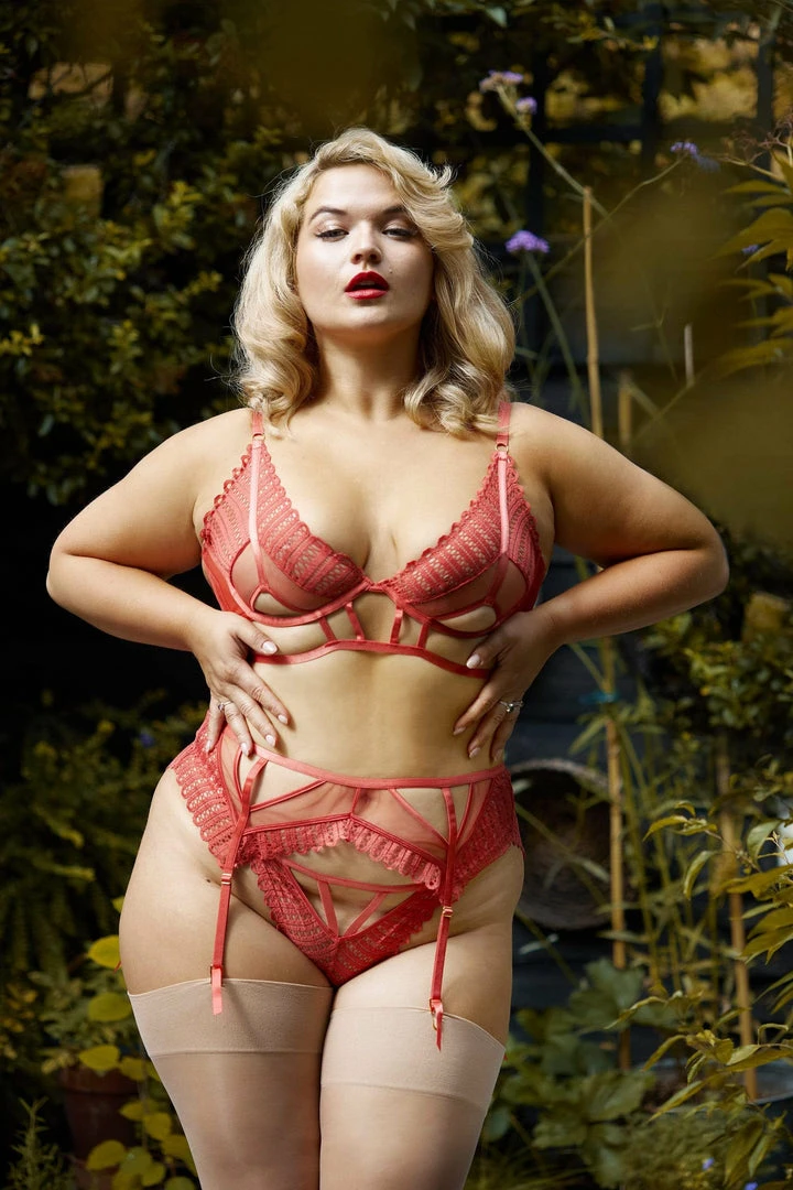 Turn up the heat in our Ellie Rust Open Bra. It is constructed from rust mesh and intricate lace and strappy caging detailing throughout. The open cut-out detail on the cups adds a little oomph to this pretty lace bra. Match with our Ellie Rust Suspender and Brief for the full look.