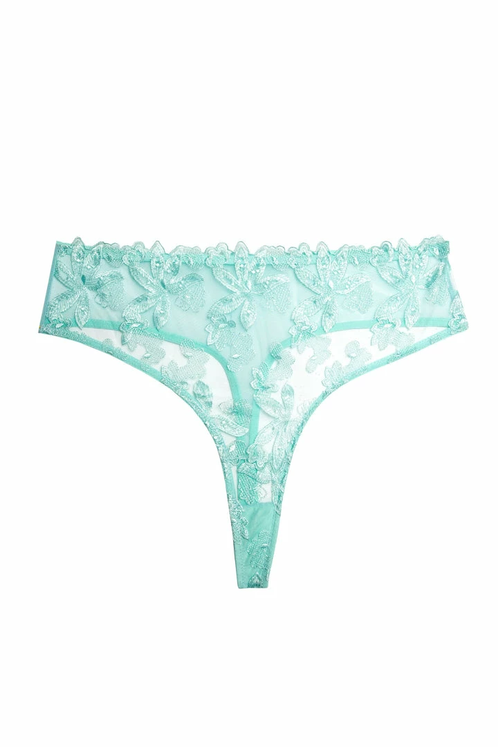 Feel elegant in Eva…The Eva Blue Graphic Embroidery High Waist Thong features a delicate floral embroidery centre over sheer mesh with a cheeky thong back. Match with the Eva Bra and Suspender Belt for the full elegant ensemble.