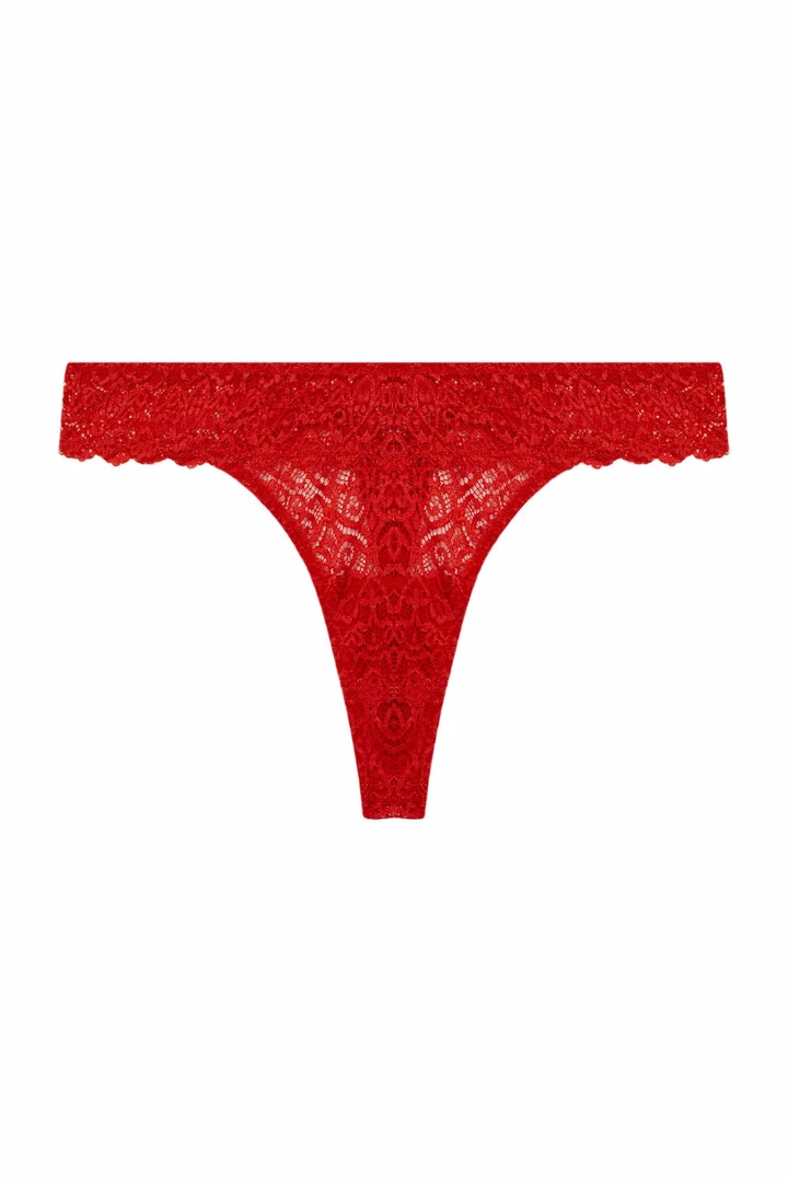 The Ariana lace thong in red. Ariana is back as a thong in a new luxurious lace, a new range of colours to add to your comfortable, everyday lingerie collection.