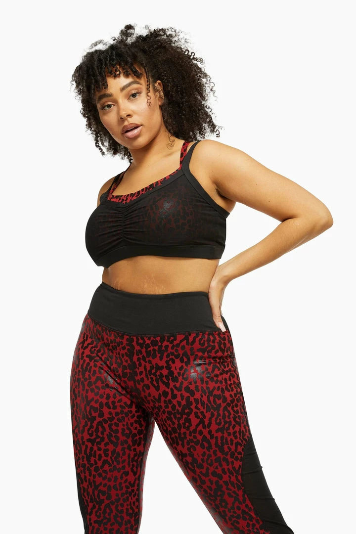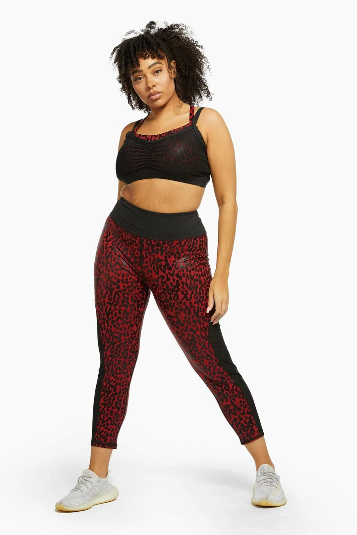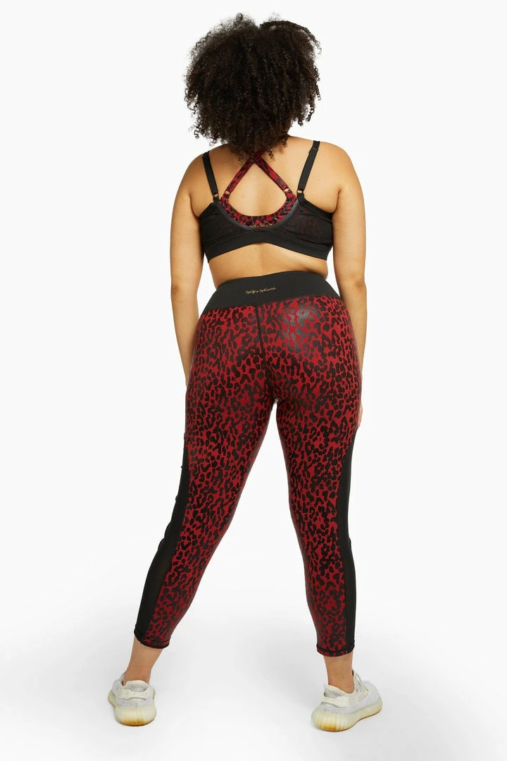 Work up a sweat in our striking Black and Red leopard print activewear. These glamorous high waisted sports leggings have a supportive waist band and soft comfortable fit.