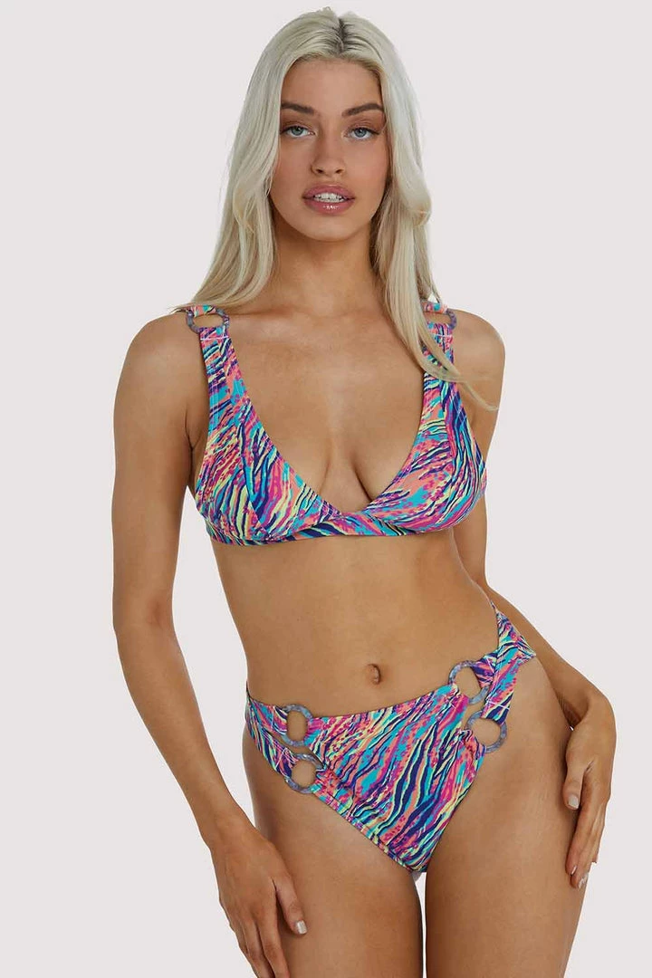 Life is better in a bikini, especially in the Emery. Featuring a vibrant zebra print and ring detailing. Style with the coordinating bikini bottoms to complete the look.