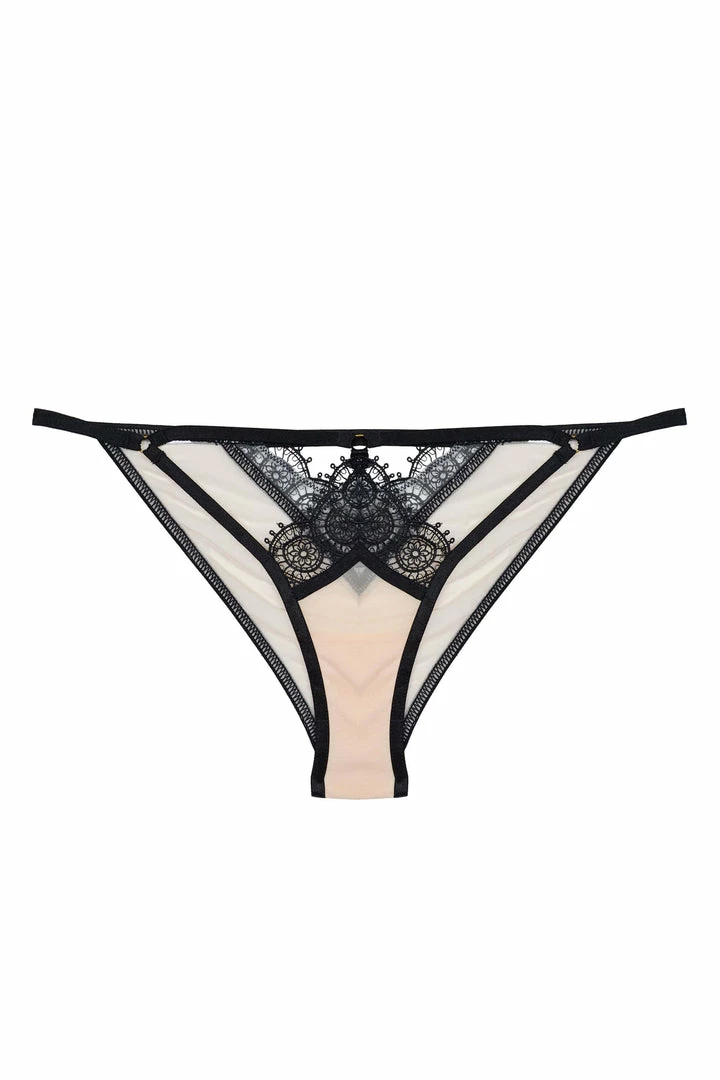 Strap up in our Una Cream and Black cut out Briefs. These racy briefs feature a blush mesh crotch with a black lace overlay and sexy cut outs. These will definitely turn up the heat… Match with our Una Bra for the full sexy strappy look.