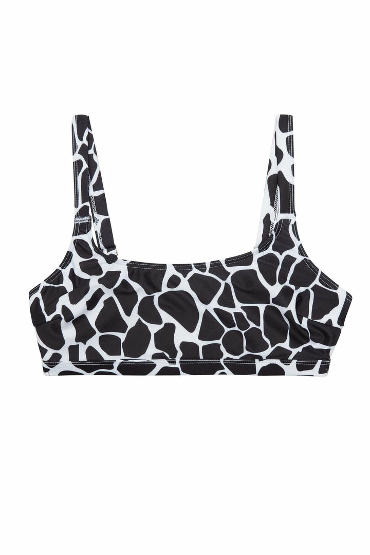 This giraffe print bikini top brings a sporty vibe to your swimwear. The giraffe print is a gorgeous pop to your summer wardrobe, and this top is ideal for taking you from the pool to the club.Â